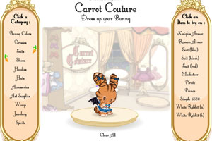 游戏中使用鼠标操作,点击服饰给幻彩兔换装打扮。