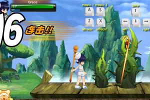 方向键人物移动,连续按2次←或→跑动冲刺,Z轻攻击,X重攻击,当头像下方蓝色条到达一定要求,可按A或S释放超强技能。