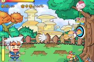 游戏开始鼠标点击拖出痞子兔,点击射击痞子兔。