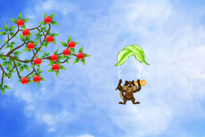 方向键←→控制小松鼠的运动,点击鼠标采摘苹果,空格暂停。