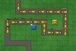 鼠标单击放置炮塔到合适的防御位置来阻击汽车的进攻。