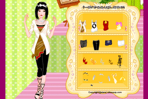 在这里你可以帮漂亮的少女换衣,化妆,还可以戴漂亮首饰,可以改变背景图案等。
