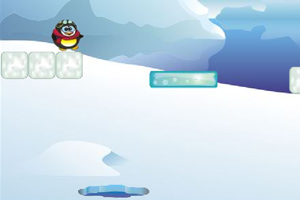 鼠标拖动浅蓝色冰块放置到合适的位置,点击上方的RUN使企鹅跳动。