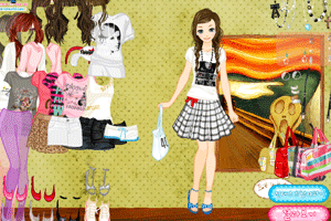 女孩打扮的很漂亮去参加一次画展,快来帮她打扮打扮吧!@@@鼠标拖动衣物给美女换装。