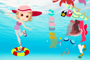 这是一个水上换装的游戏,很可爱的哦!@@@鼠标拖动衣物给美眉换装。