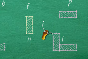 方向键控制移动,根据左上方的问题回答出答案吃掉对应的字母。