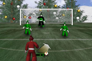 麻球游戏 圣诞节就快要到来了,这些身着圣诞老人服装的孩子们正在玩足球射门的游戏,你可以控制其中的一个孩子来完成射门。