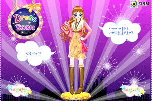 点击右下角韩文按钮开始游戏,鼠标拖动衣服和饰物到时尚女王身上,点左下角按钮重来,点右下角按钮展示效果!