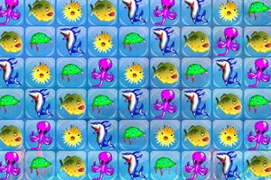 鼠标点击交换位置,至少3个相同的鱼消去。