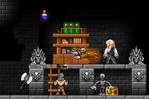 方向键←→控制移动,空格键跳跃,Ctrl键扔斧子,回车键进入游戏。