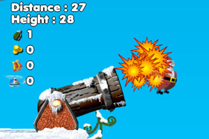 使用大炮,炸弹和手榴弹尽可能让圣诞老人飞的更高,收集现金升级来提高自己的技能。