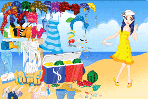 想像自己如果去海边听海风海浪,最想穿什么款的衣服呢~@@@鼠标拖动衣物给美眉换装。