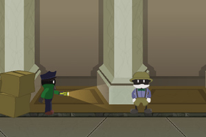 在一个风雨交加的夜晚,小偷去博物馆行窃,不要被警察发现,发现了不会马上挂,血会一点点减少。到没了就挂了。无敌版,人物无敌,不再怕被警察发现了!