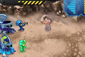 与植物大战僵尸有一定相似,但更加简单好玩,人类的军队来到了一个星球,遭到了外星怪的袭击,你要保护自己的阵地,消灭来攻击的怪物。拖动上面的炮兵或是步兵到怪物的前方即可自动攻击,当怪物靠近时,你可以让你的步兵后退或前进。