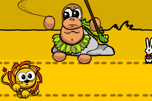 可怜的小狮子,在它的道路上会有很多野人在等着要宰了它,快来帮助它吧!