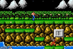 魂斗罗(魂斗羅Contra)是著名游戏制作商Konami公司于1987年发行的街机射击游戏。魂斗罗20周年纪念版,点击带三角的圆圈进入操作设置,确定设置后,点击“go”进入游戏:(1)无敌模式:在游戏过程中按“Shift+2+P”可以切换到无敌状态。(2)自定义枪弹:在“游戏设置”中按“确定”时,同时按住“Shift+2+S”,可以让散弹枪作为默认枪弹,同时按住“Shift+2+L”,可以让激光枪作为默认枪弹,以此类推。