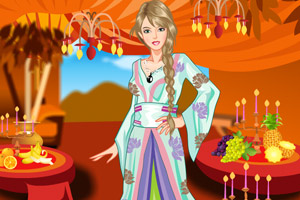 这个漂亮的女孩是第一次来摩洛哥。她梦想来这里已经很久了。现在她在这里,想感受所有的摩洛哥文化。她要参加一个专为游客举办的party。为表示尊重东道主,她决定穿一套传统的摩洛哥的服装。选择你最喜欢风格和一些配件来为她搭配服饰吧!