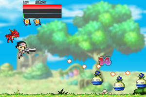 挑战冒险王终于做到第四部了。第一二两部是横版格斗,第三是塔防。第四部是空战。第一次制作空战射击类游戏,但是终于完成了。有什么不足的地方,希望您可以说出来,我下个游戏一定做得更加完善。经过第一二三 三部您的努力,终于把魔王赶出了冒险岛,蘑菇村长绝对进行追击。带着小红龙追击敌人吧。