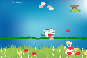 麻球游戏 简单的投球游戏,里边有三个动物,你控制中间的动物,下边的动物投球,你接住球往上边的投,将球投进算得分。