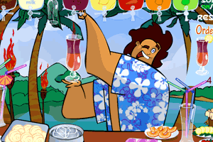 在酒吧里做调洒师,每天都需要根据客人的不同需求调出不同口味的鸡尾酒来,一定要根据客人的需求调制,要不客人就会不要的哦~@@@鼠标操作,先从左上角第三个黄花处取下杯子,再根据客的人需求加相应的材料调制。
