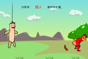 鼠标操作,点击游戏界面右边的数字按钮让大便超人做出各种动作。