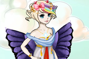 美丽彩虹仙子云中漫步,来为她换装打扮吧!@@@鼠标拖动衣物给仙子换装。