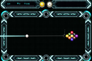效果非常绚丽的台球游戏,鼠标移动控制击球方向,离白球越远,越可以微调。点住鼠标左键,拉动鼠标,松开,击球,拉动幅度越大,击球力度越大。