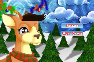 游戏中使用鼠标操作,点击服饰给小驯鹿换装。