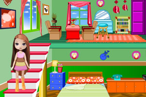 我有一个漂亮的娃娃屋,我自己设置的非常漂亮也特别的喜欢它~快来给我的娃娃屋打扮一下吧!@@@鼠标单击各种家具和装饰来给我的娃娃布置装扮吧!