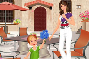 小男孩在母亲节时送给妈妈一份礼物,妈妈非常高兴,想在今天去儿童商店给他买好多玩具,请你帮助她换装打扮一下吧!