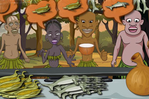 巴母在野人森林开了一家快餐店,主要经营玉米 椰奶 和热带鱼.店里的生意非常好,巴母一个人会忙不过来,快来帮帮他吧!@@@点击画面右上角的skip按钮跳过游戏说明。游戏中使用鼠标操作,在规定时间内达到一定的分数可以进入下一关。