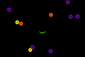 鼠标控制移动,躲避紫色的小球,吃橙色的小球。
