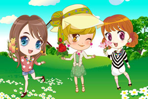 三个可爱的美眉选择一个阳光明媚的好天气去郊外野餐,在出门前请你给她们打扮一下吧!