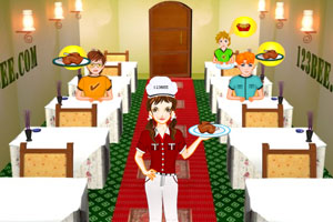 玛利是一家餐厅的女服务员,她服务周到,而且能迅速供应顾客所要的餐点,受到客人赞赏并?予可极高的评价。@@@方向键控制人物的走动,数字键1--5选择画面下方的食物,空格键把食物给客人。