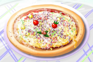 点击画面下方的按钮和拖动画面右侧的物品来制作美味的比萨吧。