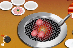 鼠标操作。玩之前先点第二个按钮看看怎么玩,介绍会告诉你每种肉的用火和烧烤时间!