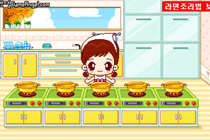 方向键←→控制人物的移动,走到菜单所对应锅的前面,按方向↓会出现水壶,面条,调料等东西,方向键←→选则材料。顺序是先倒水,再加面,然后下调料,做好按空格键给客人。
