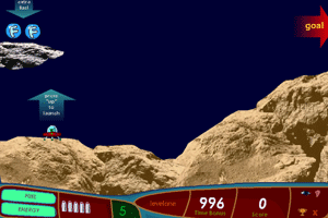 键盘方向键操作,空格键开枪,要拿到放在不同地方的燃料或者弹药,碰到障碍物要失血的,第一种太空船难度较小,第二种得考虑太空船的方向 。
