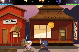 键盘操作,方向键←→移动,↑跳跃,a为横劈,s为放飞镖,d向前刺,←↑向后跳,→↑向前跳。