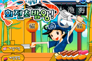 鼠标控制瞄准,按鼠标左键射出寿司,三个相同寿司相连即可消去。
