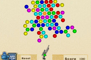 鼠标点击发射,相同的三个以上的球可以消除,根据你射的角度不同,泡泡龙会有不同的转动。