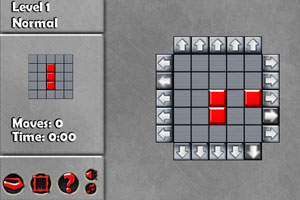 非常独特的一个组合方块的游戏,全盘的鼠标点击,在一个闭合的方形空间内将方块组合成要求的形状。游戏中的挑战模式比较多,点击play进入游戏后,右上角四个红色的按钮分明代表不同的游戏模式。@@@鼠标点击方框周围的箭头控制方块的移动,当方块的位置