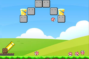 可爱的蘑菇大炮第二部,你要把蘑菇打进黄色桶里~@@@鼠标控制方向,鼠标左键射击。鼠标离炮口越远,发射速度就越快。