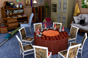 在这间精致的客厅里,有餐桌,沙发,柜子和书架,你要寻找隐藏的25个数字,游戏有三关,画面精美,试下吧...@@@游戏中使用鼠标操作。