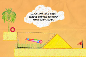 用神奇的魔法笔让小球达到它的目的地吧!要开动脑筋哦,后面会比较困难。@@@默认的是画笔工具,可以画出各种形状的图形(长按住鼠标左键是画出正圆形)按住键盘A键画笔就变成了橡皮,S键是起到钉子的作用,用来固定两个图形的结合,用叉号来表示,D键是