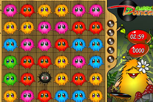 在世界上有好多非常可爱的毛毛球。它们的情感丰富多彩。但它们太害羞,快来帮助它们吧,只要3个一样的颜色的小球,就可以再一起消除了。@@@鼠标控制移动,3个一样的就可以消除。右边有每个颜色圈,只要满了,就可以点一下,用魔法毛笔可以把不同颜色的球