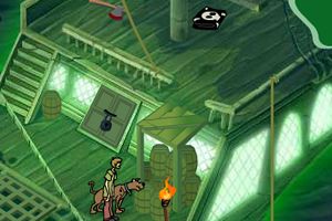 逃离幽灵鬼船,主人和他的狗被困在百慕大三角洲的一艘幽灵鬼船上,他们要找到可以利用的东西互相帮助逃离这可怕的地方... @@@方向键控制行走,空格键上台阶;S键保存游戏;L键是载入上次游戏的记录;T键控制你所找的物品列表(在游戏右上角显