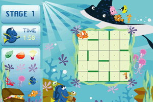 游戏点第一个按钮开始,用方向键移动让小鱼到达指定的位置逃出!