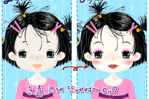 千万别小看mm化妆,这可是一门功夫。这不,bf来电话约会,mm赶快行动起来!@@@首先游戏会给出mm化妆的样图,不过一闪就过去了,要尽量记住。然后鼠标点击左侧格式化妆品,开始化妆,一个妆画完后才能进入下一个。注意男朋友的生气槽哦^^