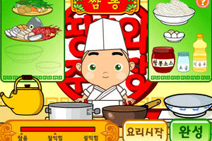 非常可爱的烹饪游戏,大厨师傅教小徒弟做海鲜面,要看好师傅怎么做的哦,师傅示范完后点右下角文件你开始做,如果有什么忘记里可以点右上角帮助偷看下秘笈哦!~快来做海鲜面给师傅尝尝吧!@@@鼠标单击操作来制作美味的海鲜面吧!